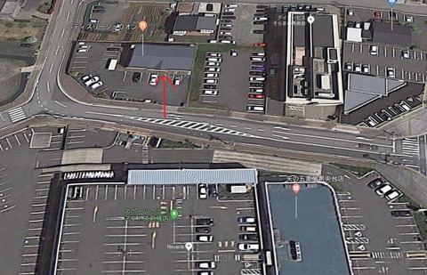 現場はマンション1階に洋菓子店と美容院が出店し、来店客用の駐車場にはタイヤ止めが設置されている。
