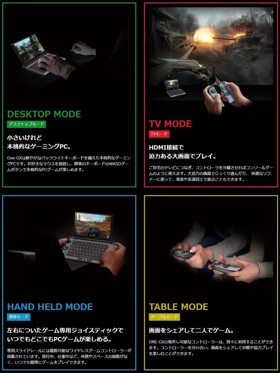 7インチのNintendo Switchみたいな超小型ゲーミングPCが発売してしまう 値段は8万9000円~ 2020年06月30日 カテゴリ:ゲーム 1: 亜鈴状星雲(東京都) [DE] 2020/06/29(月) 16:14:31.75 ID:rg9BxDtZ0● BE:878898748-PLT(16000) ONE-NETBOOKが販売しているUMPC『OneMix』のゲーミングPCモデル『OneGx1』が本日より予約開始された。 『OneGx1』はUMPCをベースとしており、7インチの1920×1200、IPS液晶、Corei5プロセサー(第10世代)、 ゲーミングPCによくあるRGBキーボード、Wi-Fi6対応、デュアルファンなどゲーミングPCならではの仕様となっている。 それだけではなく最も特徴的なのはパソコンの左右に取り付けられているコントローラー。『Nintendo Switch』を 思わせるこのコントローラは脱着が可能で、ほとんどのPCゲームに対応。 本体の重さはわずか620グラムで、タブレットのようにカバンに入れて持ち歩くことが可能。 メインメモリーは8GB、16GBから、ストレージは8GB版が256GB、16GB版が512GBのPCI-eSSDとなっているほか、 バッテリーは12000mAhとなっている。値段は8万9800円~となっている。 こちら『OneGx1』は日本国内でも正式な発表会を行う予定だ。 https://gogotsu.com/archives/58146 【7インチのNintendo Switchみたいな超小型ゲーミングPCが発売してしまう 値段は8万9000円~】の続きを読む
